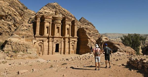 „Wil je paardrijden zoals Indiana Jones?” De vraag wordt wel tien keer herhaald door een rij mannen met hun paard in de hand. Onder een knalblauwe lucht en de warme ochtendzon wacht de groep vlak na de ingang van Petra op bezoekers. Ze doen denken aan de rij taxichauffeurs op de parkeerplaats naast de historische woestijnstad die toeristen al op de trap van de bus begroeten. Met hun taxi’s en paarden hopen de mannen wat geld te verdienen. Geld dat hard nodig is, want ook dit najaar snakt Petra n...